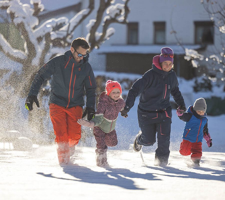 Here at the Auenhof Fulpmes, the little ones are the biggest! Our own playground in the garden, petting zoo, games room with iWall, plenty of space in the family rooms or the holiday flat, child-friendly meals, space to run around and have fun, splashing around in the pool and making new friends at the cinema evening in the hotel. So there's plenty of room to spend time together and enough space for little explorers.